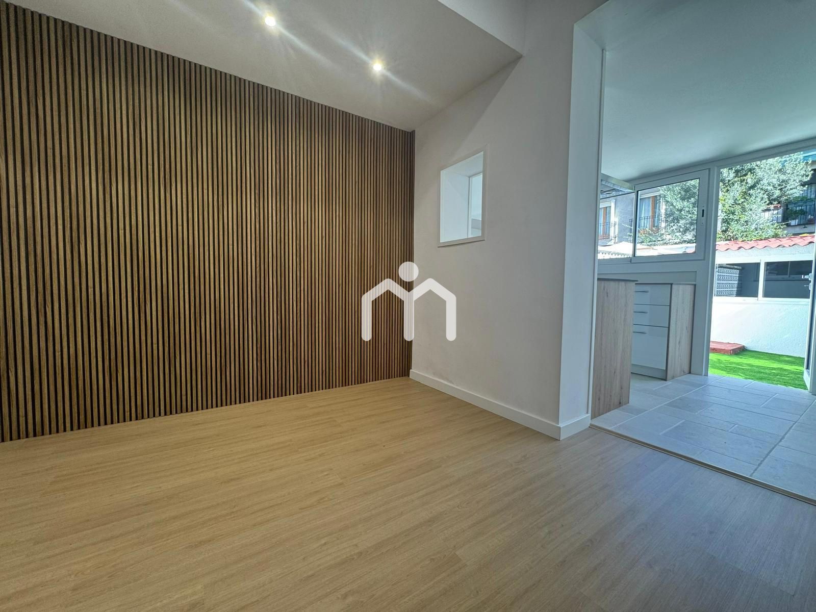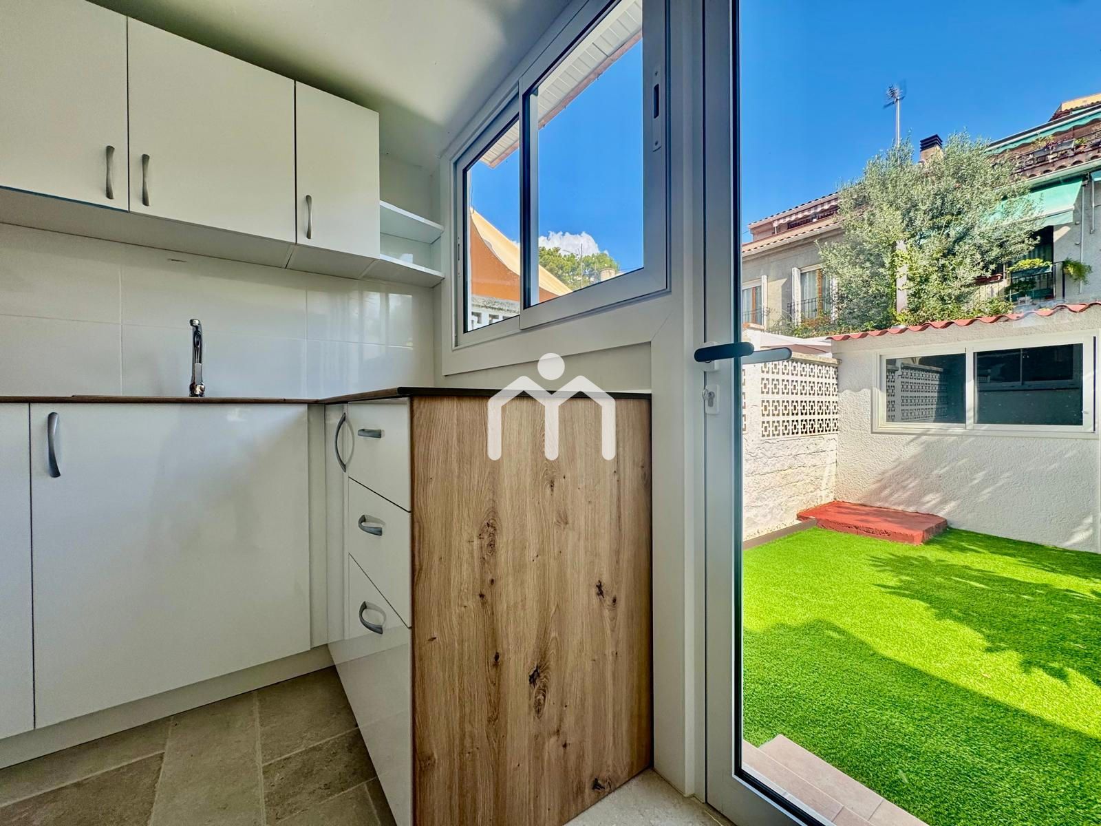 La terraza colinda con un práctico lavadero y una sala polivalente que puede usarse como despacho, sala de juegos, estudio o habitación extra.
