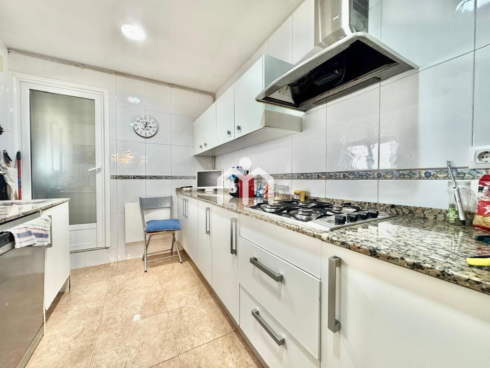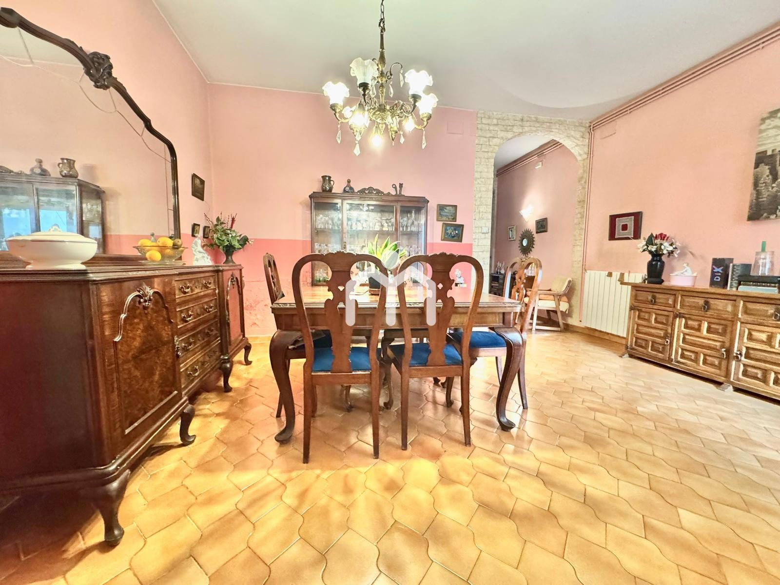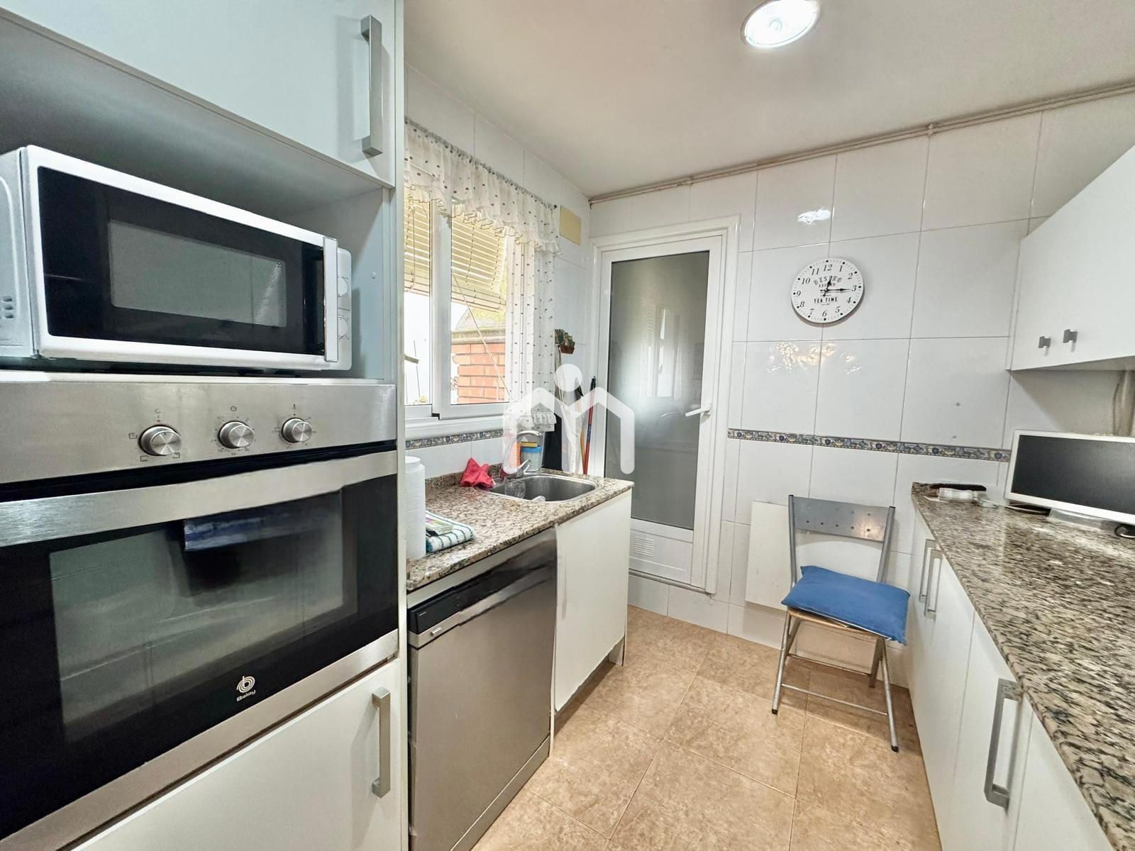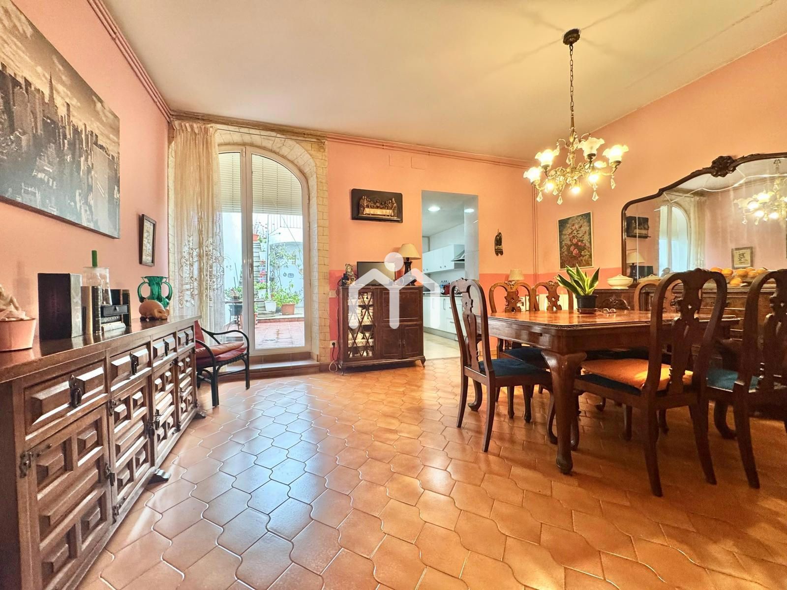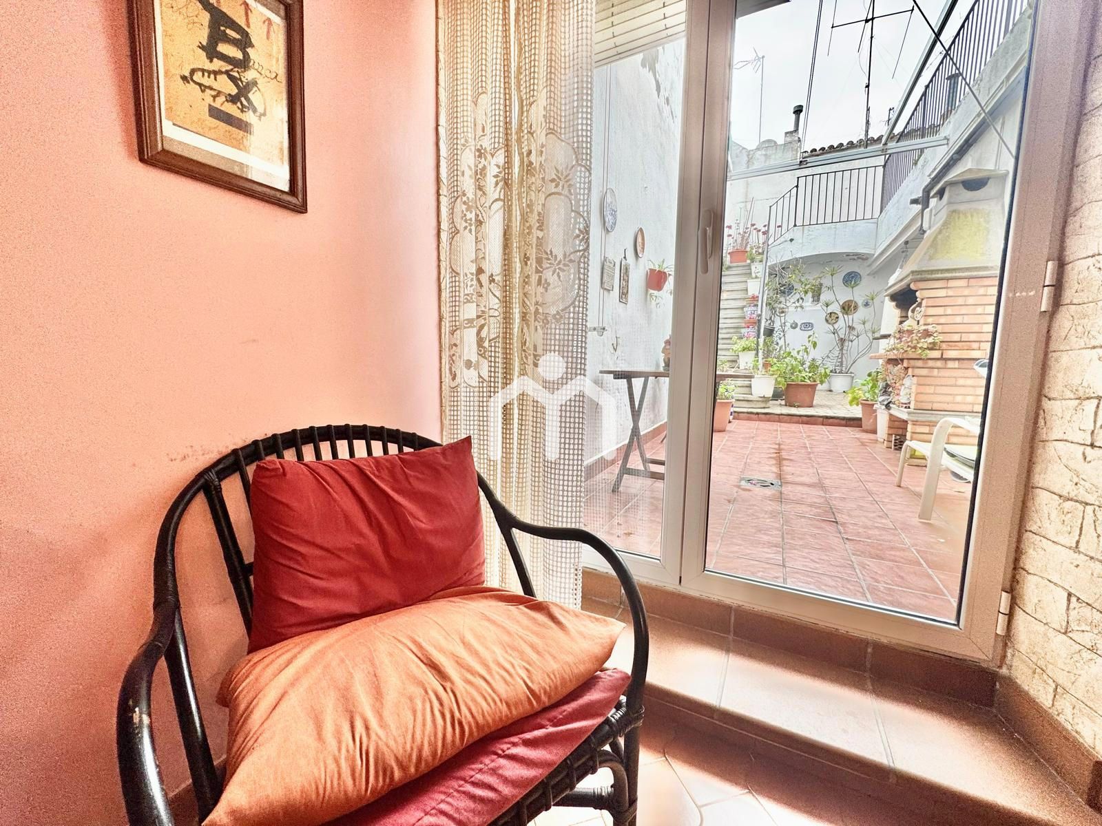 Al entrar, un acogedor recibidor un amplio salón, un espacio con chimenea que invita a relajarse en invierno. Desde aquí accedemos al comedor, con grandes ventanales que conectan directamente con el patio. Este patio es un auténtico oasis urbano, lleno de plantas, con sol todo el día y una barbacoa lista para disfrutar de comidas al aire libre.
